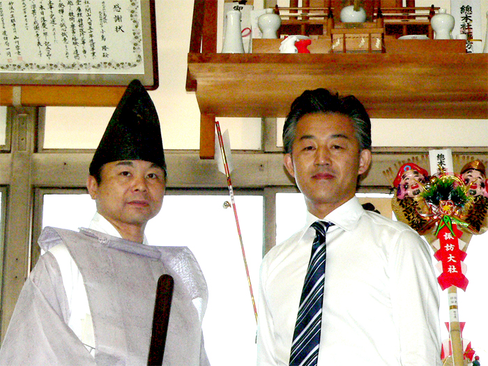 弊社では、毎月鎮国守国神社宮司様にお越し頂いて、御祈祷をお願いしております。