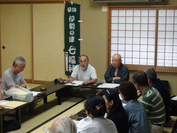 こちらは実際に七寺社、七福神巡りを体験し意見交換を行っている様子です。各寺社が七福神御尊体をどのように御祭りされているのか、又、七福神巡りを参られる方々をどのようにご案内していけば気持ちよく廻って頂けるのか等、全員でお互いの気付きの心を集め、改善に役立てているところです